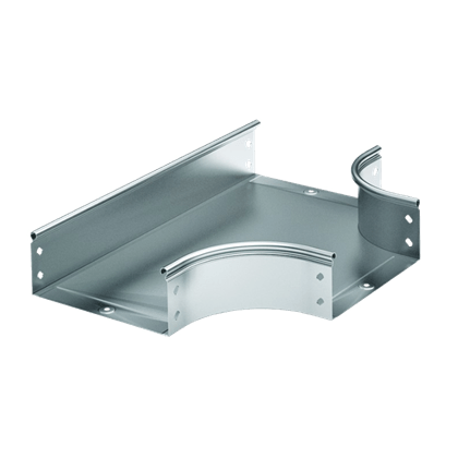The horizontal tee is prepared for snap-on mounting to Female ends of straight elements. In the center of each end of the widths there is a circular salient perforated area securing the electrical continuity.