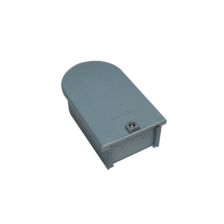Materials Base and pole adapter plaque made of thermoplastic material reinforced with fiberglass (Pa6-R). Grey RAL 7035 color. Characteristics Closed bottom base which can be drilled in order to apply two diameter 32 mm tube locking unions. Base pre-engineered for connection to cover piece, in order to route cables. The base can be used in case of replacement of old aluminium boxes of equal size, because the existing fixing on pole coincide. Wiring can be made in Class II CEI 64-8 Protection degree IP 44 in compliance with CEI EN 60529, IK 10 according to CEI EN 62262. Version/CN: For 89 to 140 mm diameter poles. Cable input/output from bottom base pre-engineered for tubes with max. 2 diameter 32 mm inlets. Fixed to the pole with screws or 1/2" to 3/4" Band-it tape using plaque. Version/P: For installation on flat surfaces (walls, square and rectangular section poles, flat side of polygonal poles). Cable input/output from bottom base preengineered for tubes with max. 2 diameter 32 mm inlets. Fixed to walls with plugs and screws and to poles with M5 metric screws. Versions with cover piece: Versions made by combining the SCF2/CN pull box with the relative Kit for use with the KTPF/70/2 cover piece.