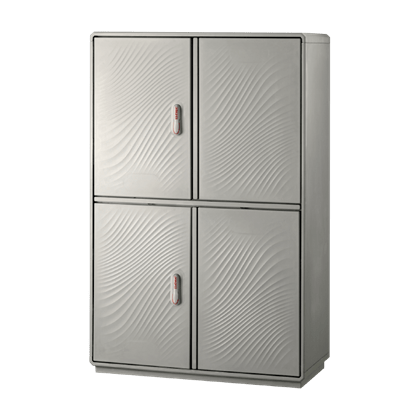 Characteristics Made with 2 equipment compartments separated by an intermediate partition. Rated insulation voltage Ui 690V. Complete with fixing frame for installation on a concrete base. Hinged door complete with closing mechanism operated by a retracting handle and Y21 singlecipher safety lock (DIN18252 profile cylinder - customized cipher on request). Door opening side can be changed on site even on a single compartment (for detailed information consult the accessories selection). Arrangement of the compartments (upper/lower) modifiable on site according to the needs of installation of equipment and internal accessories (DOTPER® system) Can be equipped with mounting plates and dedicated accessories for creating panels. Mounting plates equipped with studs that can be fitted with threaded inserts with M6x20 stud bolts for fixing accessories. Closing bottom plate with conical fairleads and seal (only IP55 versions). Materials Made of fiberglass RAL 7035 color. Handle in thermoplastic resin. Rotating bracket in galvanized steel. Internal rods and posts in steel with GEOMET 321 treatment. Concealed external hinges in stainless steel. Seals in vulcanized thermoplastic elastomer. Standards IMQ certification made in accordance with standard CEI EN 62208. Protection classes IP55 and IP44 in compliance with CEI EN 60529, IK10 according to CEI EN 62262. Pre-engineered for apparatus in class II according to CEI 64-8/4