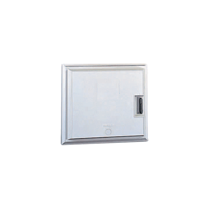 Materials Door and frame moulded in SMC (fiberglass) - grey RAL 7040 color. Characteristics Hinged door complete 3 points latch operated by key. Opening angle over 90°. Ventilation labyrinth around door perimeter. Complete with galvanized and passivated door fixing supports to wall in or fix with expansion plugs. Types TPV/71 - TPV/74 - TPV/75 and derived versions complete with locks with retracting handle accessible by means of safety lock and Y21 cipher. Granite colours available on request: light grey - dark grey - antique pink. Protection degree IP 43 in compliance with CEI EN 60529 and IK 10 according to CEI EN 50102. Executions WL = without lock. Prearrangement locks application series SCS 86/... - SCM 86/....to order separately