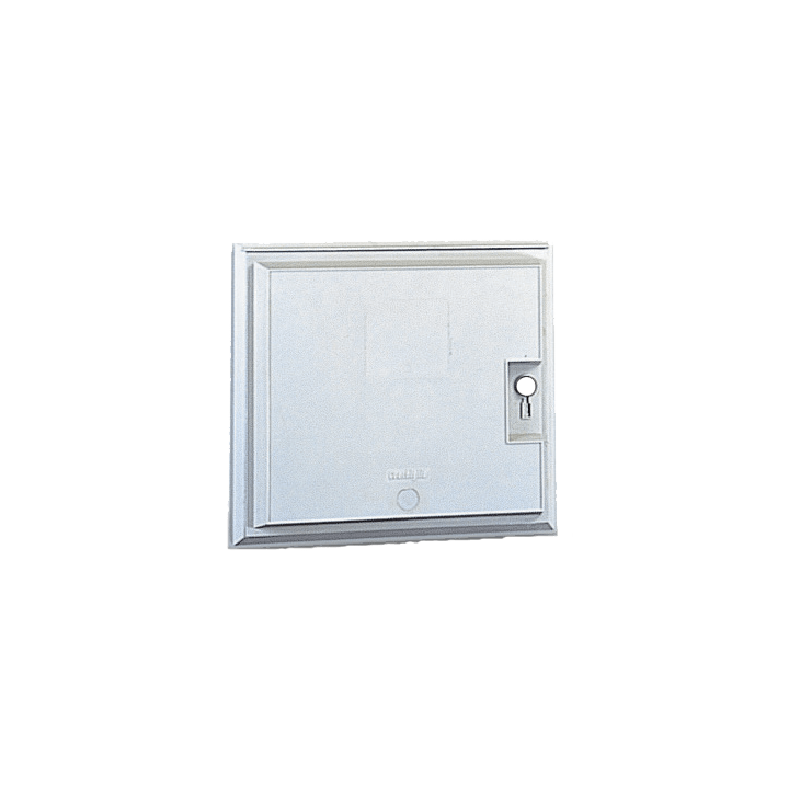 Materials Door and frame moulded in SMC (fiberglass) - grey RAL 7040 color. Characteristics Hinged door complete 3 points latch operated by key. Opening angle over 90°. Ventilation labyrinth around door perimeter. Complete with galvanized and passivated door fixing supports to wall in or fix with expansion plugs. Types TPV/71 - TPV/74 - TPV/75 and derived versions complete with locks with retracting handle accessible by means of safety lock and Y21 cipher. Granite colours available on request: light grey - dark grey - antique pink. Protection degree IP 43 in compliance with CEI EN 60529 and IK 10 according to CEI EN 50102. Executions WL = without lock. Prearrangement locks application series SCS 86/... - SCM 86/....to order separately