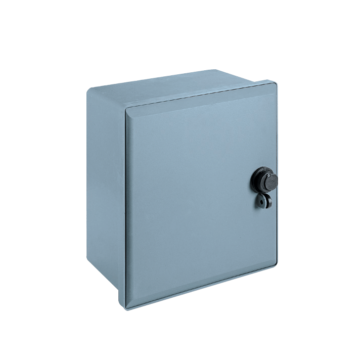 Materials SMC moulded (fibreglass) - grey RAL 7040 color. Characteristics Hinged cover closed by means of locking mechanism that can be opened with triangular key and provision for padlock. Internal aeration obtained by means of labyrinth on cover perimeter. Protection degree IP43 in compliance with CEI EN 60529; IK 10 according to CEI EN 62262. Executions - WL = without lock (to be ordered separately). Suitable for direct mounting of electronic meters: - Max. 1 meter unit integrated single-phase type GTI-GTY - Max n°2 single-phase power up to 10Kw type GEM and GISM. Fixing with n°2 base T5 A2 (serial 286103). - Max n°1 single-phase + n°1 three phase power up to 10Kw (single-phase) type GEM and GISM E 20Kw (Three phase) type GET2A and GIST. Fixing with base T5 A2 (serial 286103) and n°1 base T5 A4 (serial 286142). - Max n°2 three phase for power up to 16.5Kw type GET2A, up to 30Kw type GIST. Fixing with n°2 base T5 A4 (serial 286142).