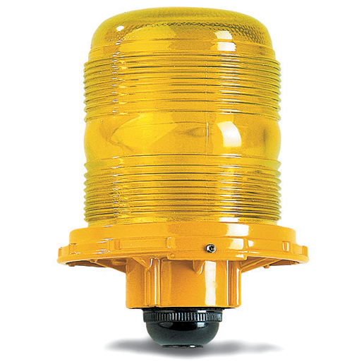 Materials Flange and diffuser locking ring in die-cast UNI EN 1706 AC - 46100 DF aluminium alloy. Surfaces protected with RAL 1004 yellow colored stove-enamelled synthetic paint. LSA4 types: polycarbonate diffuser with vertical prismal effect. LSA5 types: hardened glass diffuser with FRESNELL lens. Optical apparatus Screw-on adjustable bulb-holder with E 27 connection. Max. lamp power 60 W. 360° illumination. Protection degree LSA4: IP43 in compliance with CEI EN 60529, IK 10 according to CEI EN 62262. LSA5: IP54 in compliance with CEI EN 60529, IK 09 according to CEI EN 62262. Applications To signal permanent or temporary obstacles, light posts, cranes, parked bulky vehicles, moving au-LSA5/GE/F tomatic gates, diversions, etc.