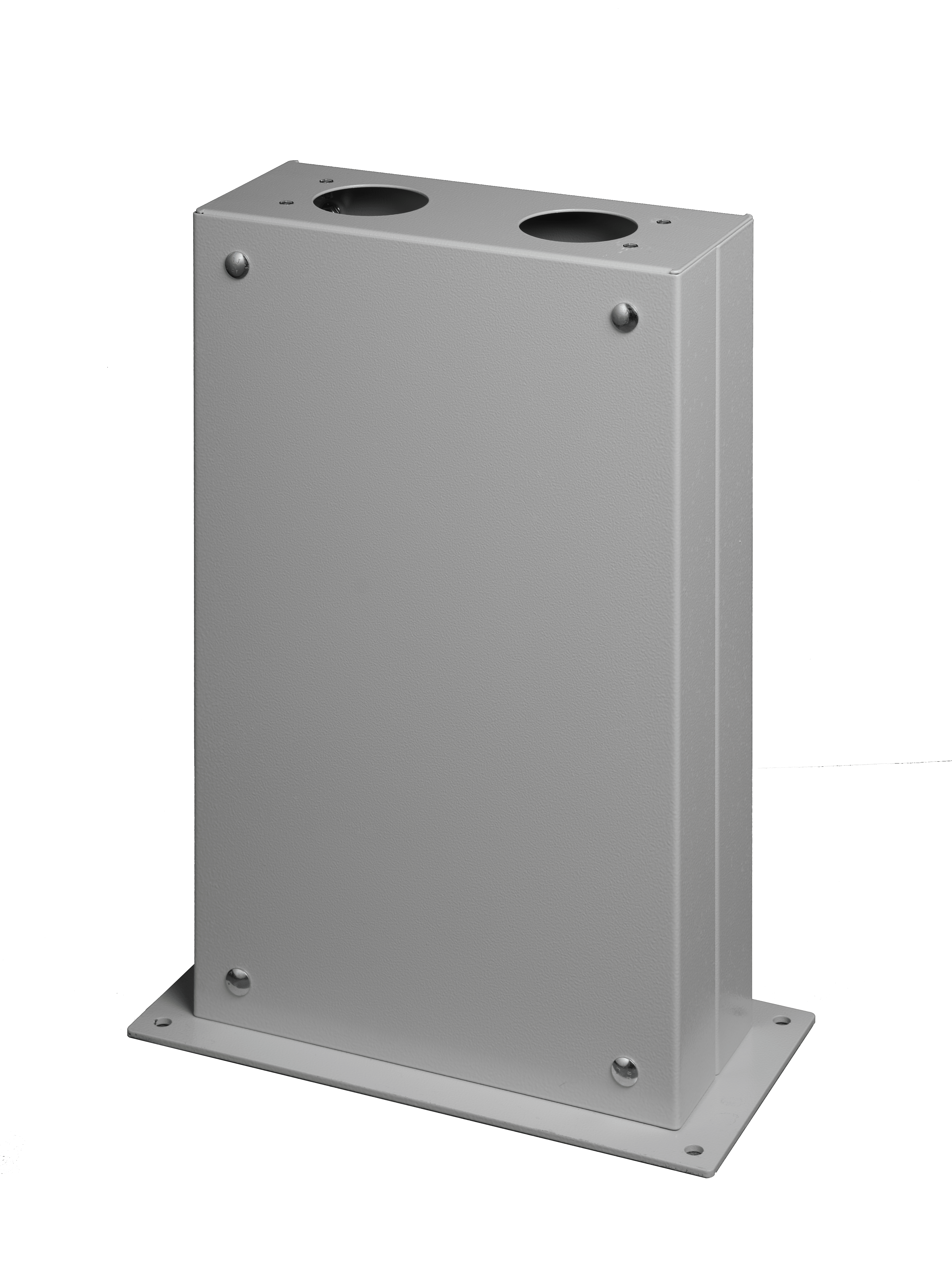 Pedestal made of galvanized sheet steel with RAL 7035 paint finish corrosion class C4 (outdoor use in industrial and urban areas with high pollution and high humidity). The base can be mounted on the floor with dedicated frame (to be ordered separately) or fixed directly on the base casting with dowels.
