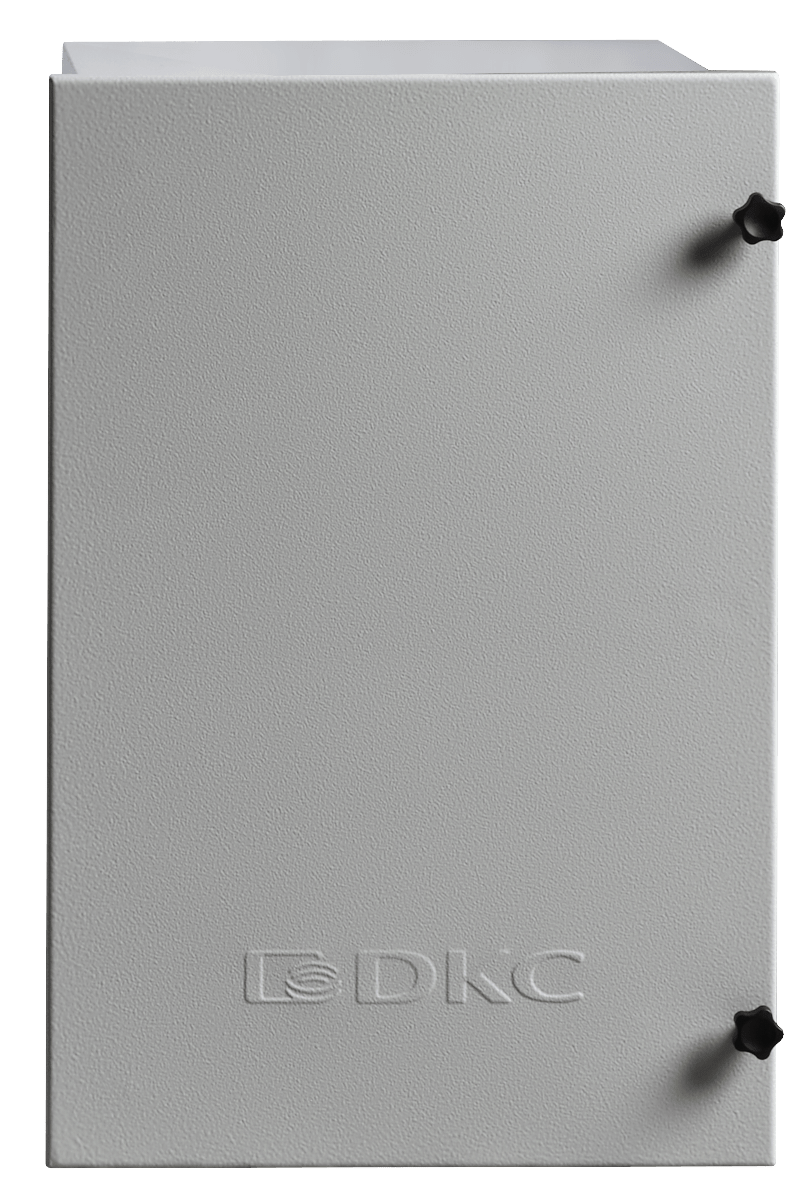 Box made of galvanized sheet steel with RAL 7035 paint finish corrosion class C4 (outdoor use in industrial and urban areas with high pollution and high humidity). Door with deposited EPDM gasket, equipped with locking by means of screw knobs with brass inserts and Y21 cipher security lock. Supplied with bracket kit for wall mounting and prepared for pedestal installation by drilling holes for cable passage at the bottom. To be completed with related accessories for interior equipment and ventilation.