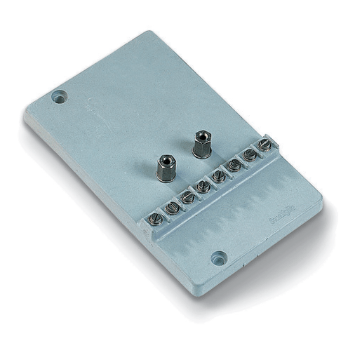Materials Insulating base moulded in SMC (fiberglass). Characteristics Through terminals in brass with screw fitting for cable terminals. Stainless steel studs with 4 hole. Applications To check galvanic couples between each joint or parallelism between pipes and reference electrodes.