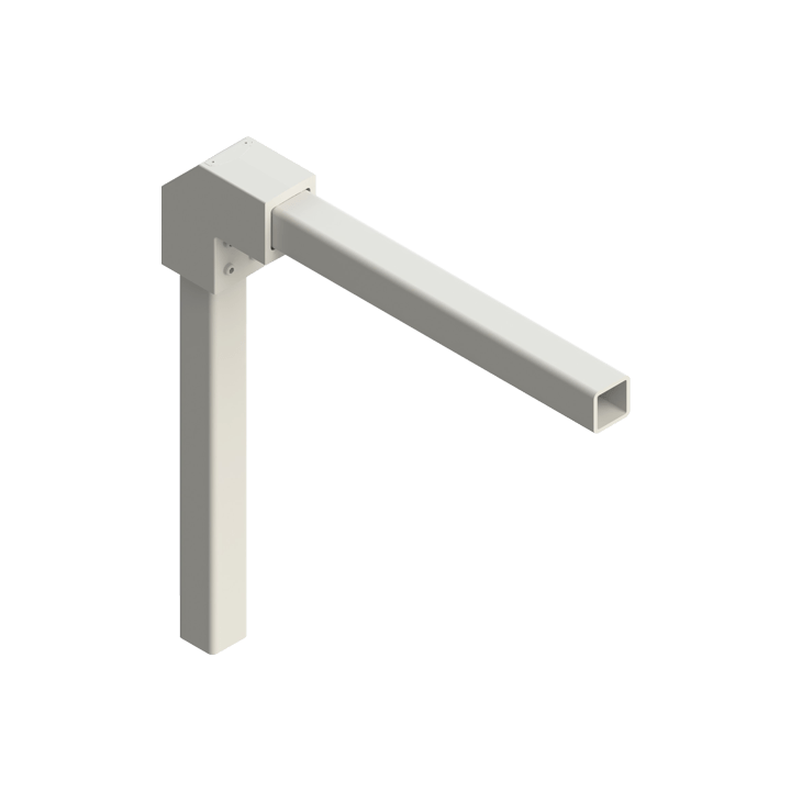 90° angle coupling. Purposed to join horizontal and vertical elements of an arm system. To be used in combination with 50x50 mm square pipes.