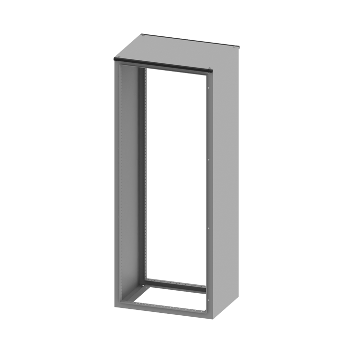 CAE Compact Cabinet Structure only. Structure: solid sides and top, manufactured of 15/10 steel, painted RAL 7035 with textured epoxy-polyester, adjustable cable gland bottom. Reae panel: 15/10 thick steel, painted textured RAL 7035, 15/10 thick steel, with rounded safety edges. From 4 to 10 points of fastening to the structure. Door: 20/10 thick steel, painted textured RAL 7035, with rounded safety edges. Complete with an internal reinforcement frame made of galvanized tubular profile, 4 closing points, 4 hinges and an escutcheon with a double-bit lock insert Ø3 mm. Protection degree: IP 55 complies with NEMA 4. IP/NEMA protection degree shown in the table below is referred to a cabinet/bayed cabinets complete with a door and a rear panel.