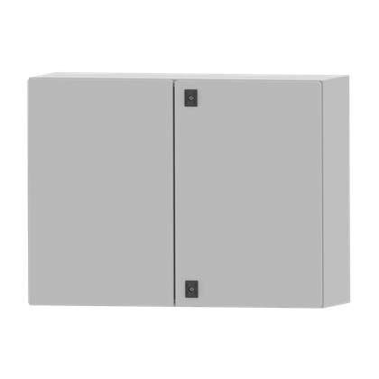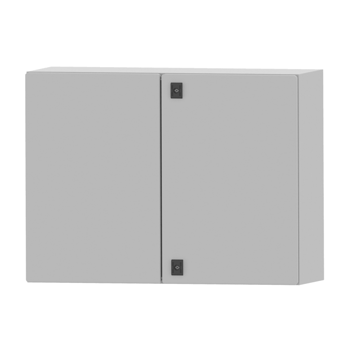 CE boxes with double door. Structure: 15/10 thick sheet steel, painted textured RAL 7035. Mounting panel: 20/10 thick galvanized steel. Door with two leaves: reversible, painted textured RAL 7035, provided with a seal applied by continuous molding. Cable gland plate: appropriately dimensioned and located on the box bottom. 2 locking element, box. Impact resistance degree as per IEC EN 62208: IK10. Protection degree IP 55 complies with NEMA 12. Connect to the CADENAS portal to download the drawings.