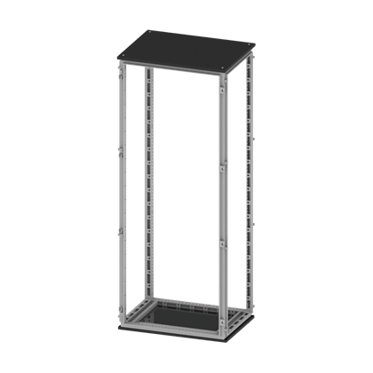 CQE modular cabinet structure, Enclosure completed protection degree IP 55 The structure of CQE cabinets is composed of bars of 15/10 thick galvanized steel with a patented closed profile forming a support frame. The edges folded eight times impede the ingress of water, and concur in the protection degree determination. This modularity allows to mount accessories in a quick and easy manner. In the bottom part of the enclosures there is a sizable entry to be closed with three removable and interchangeable gland plates. Doors are manufactured of steel. Inside the door a frame perforated with 25 mm pitch is mounted that is easily removable. This frame assures an easy anchoring for any type of application.