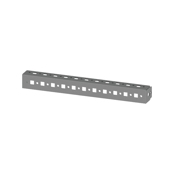 H30 Front perforated rail for CQE, DAE and CAE. Manufactured of 15/10 thick galvanized steel. Provided with 3 rows of holes with 25 mm pitch. May be mounted directly to the frontal part of the enclosure or inwards with 25 mm pitch using side rails (RZPDL) as a support for mounting.Pack of 4 pieces complete with fasteners.