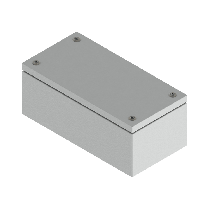 Junction boxes without flanges. Structure: 10/10 thick sheet steel, painted textured RAL 7035. Door or hinged cover: painted textured RAL 7035, provided with a seal applied by continuous moulding. Mechanical resistance degree as per IEC EN 62208: IK10. Box without flanges IP 66 complies with NEMA 4.