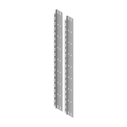 L-shaped upright for 19” rack, manufactured of 20/10 thick sheet steel painted RAL 7035. Pack of 2 pieces complete of mounting accessories. Max. load: 150 kg per pair.