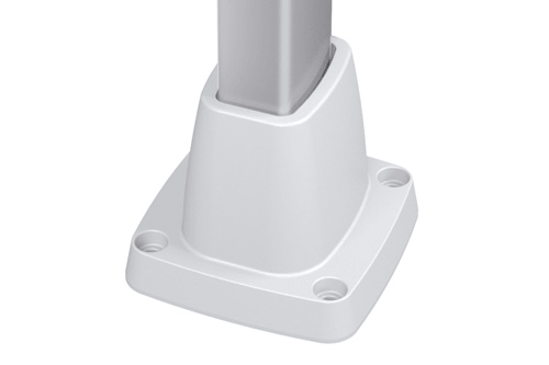 TS SERIES floor joint for connecting the floor to the vertical part of the arm system. Made of aluminum alloy, color RAL 7035. The cap is made of plastic, color RAL 9005. Includes fixing screws and gaskets.