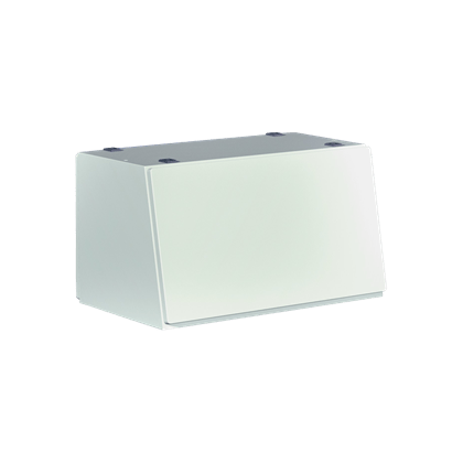 Video console top, manufactured of 15/10 thick sheet steel, painted textured RAL 7035. The rear door is manufactured of 15/10 thick sheet steel, painted textured RAL 7035. The front door is manufactured of 20/10 thick sheet steel, complete with support bars for door stop. The mounting panel is manufactured of 20/10 thick galvanized sheet steel, adjustable in depth with 25 mm pitch. Protection degree: IP55 EN 60529 compliant to NEMA 12.
