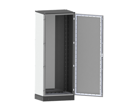 Questo modello di armadi elettrici industriali è disponibile in sei altezze standard, da 1200 a 2200 mm, nel colore standard RAL 7035 bucciato, con tetto, base e zoccolo RAL 7011 bucciato.
