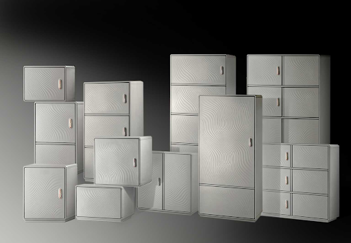 La linea Conchiglia di DKC realizza armadi in vetroresina per esterno componibili e multifunzionali.