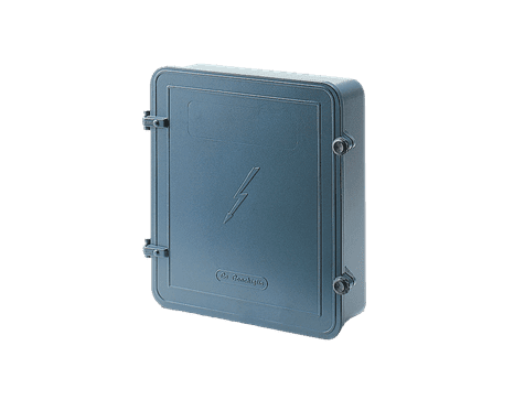 La centralina della serie CGP è fornita in contenitore della serie RPcon dimensioni ingombro 457x467x293 mm in lega di alluminio UNI EN 1706 AC – 46100 DF e con per il grado di protezione IP55. È predisposta per alimentare fino a un max di 15 segnalatori per lato collegati in parallelo.