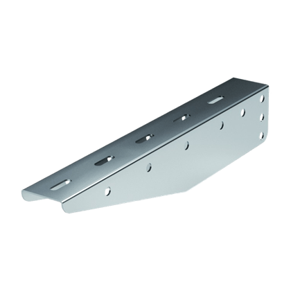 Base mensola realizzata in acciaio verniciato blu. Asole 25x7 mm con interasse 60 mm. Fori diametro 8,2 mm con interasse 60 mm. Si monta sul profilato di sospensione pesante con viti M8x60, dadi M8 e rondelle. Adatta per asta di sospensione. Spessore: 15/10
