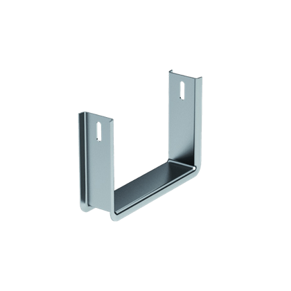 Staffa di sostegno in acciaio verniciato grigio ral 7035, utilizzata per sospensioni tramite bandella e staffa.
