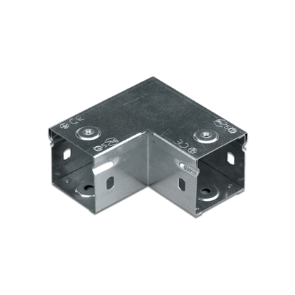 La curva piana 90° è predisposta per il fissaggio ad incastro nelle estremità Femmina degli elementi rettilinei. Al centro di ogni estremità delle basi un'area anulare a rilievo forata garantisce la continuità elettrica.