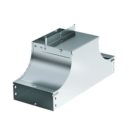 La derivazione a T in salita sghemba è predisposta per il fissaggio ad incastro nelle estremità Femmina degli elementi rettilinei. Al centro di ogni estremità delle basi un'area anulare a rilievo forata garantisce la continuità elettrica.