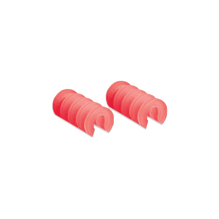 Portacoperchio in plastica di colore rosso utilizzato per garantire un'installazione più solida dei coperchi sulla passerella a filo. Diametro 4 mm.