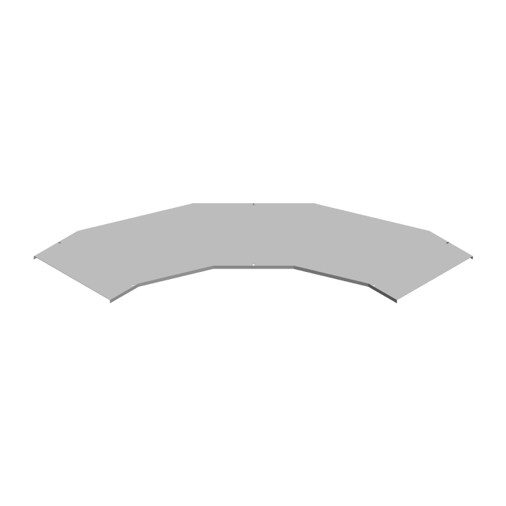 Coperchio curva piana 90° in acciaio inox AISI 316. Fissaggio all'accessorio tramite apposito gancio. Tipo: piano. A richiesta: - Larghezza: 700-800-900-1000; - Raggio: 300-900; - Spessore: 0,6-1,5,2* (*solo per il materiale zincato a caldo); - Materiale: Acciaio zincato a caldo, AISI304 - AISI316, alluminio; - Tipo: spiovente