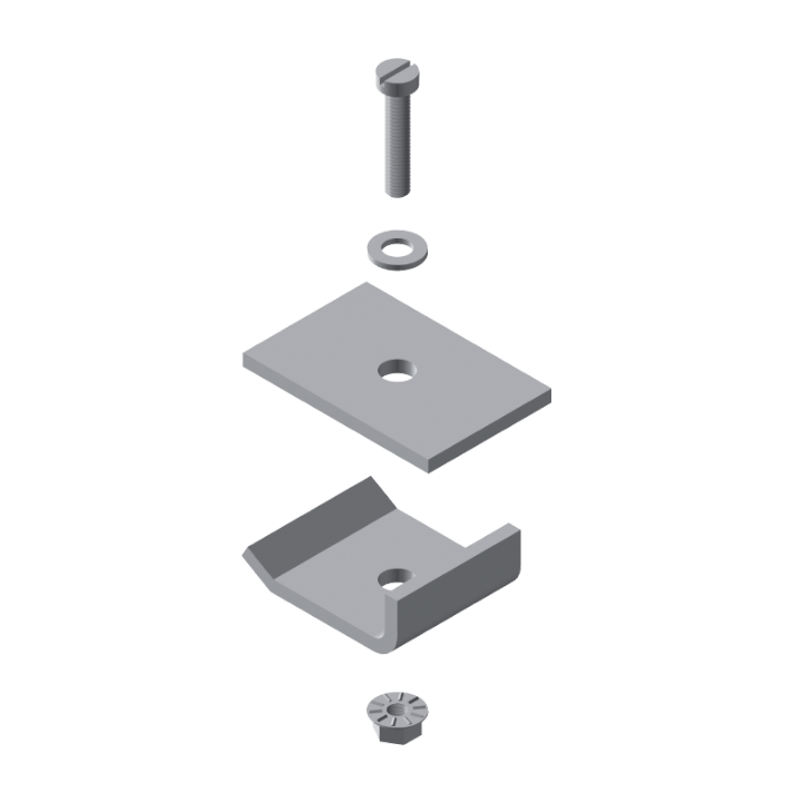 Vite testa cilindrica M6x40 che in combinazione con rondella piana D6, piastrina supeiore, piastrina inferiore e dado M6 costituiscono gli elementi per il fissaggio passerella alla trave.