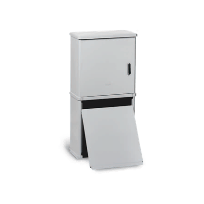 Materiali Stampati in SMC (vetroresina) – Colore grigio RAL 7040. Cerniere interne in resina termoplastica a base poliarillamidica rinforzata con fibra di vetro (IXEF). Parti metalliche esterne in acciaio inox o in acciaio tropicalizzato e verniciato grigio, elettricamente isolate con l’interno. Corpo serratura in vetroresina e integrato nello sportello. Maniglia in resina Poliammidica. Perno di manovra serratura in lega di alluminio. Aste e paletti interni in acciaio con trattamento Geomet 321. Caratteristiche Armadio conforme a norma CEI EN 62208. Tensione nominale di isolamento Ui 690V. Porta incernierata completa di chiusura tipo cremonese azionabile con maniglia a scomparsa e con chiusura in tre punti per garantire una perfetta aderenza dello sportello. Maniglia predisposta per cilindro a profilato DIN 18252 con chiave di sicurezza a cifratura unica Y21. Prese d’aria inferiori e sottotetto per ventilazione naturale interna. Parete di fondo dotata di inserti annegati di stampaggio in ottone per applicazione apparecchiature direttamente o attraverso piastra di fondo. L’armadio è fornito su pallet in confezioni standard di 4 pezzi tranne per CVT/0-WL e CVT/PT-WL. Accessori di installazione da ordinare separatamente. Grado di protezione IP 44 secondo CEI EN 60529, IK 10 secondo CEI EN 62262. Esecuzioni standard complete di serratura con leva a scomparsa. Esecuzioni WL – Senza serratura e predisposte esclusivamente per utilizzo di serrature serie SCS-SCM. Le dimensioni utili, riportate in tabella, indicano lo spazio massimo disponibile per equipaggiamenti nel rispetto delle caratteristiche certificate dalla norma CEI EN 62208 (spazio utile protetto).