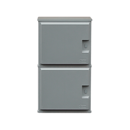 Armadio realizzato in vetroresina - colore grigio RAL 7040 Serratura a doppia chiusura tipo unificato Enel secondo DS 4541 Telaio di ancoraggio realizzato in acciaio, completo di trattamento di zincatura elettrolitica + verniciatura epossidica colore RAL7001. Grado di protezione IP43 secondo CEI EN 60529, IK10 secondo CEI EN 62262. Ciascun vano adatto per il montaggio dei contatori elettronici: - max n°1 trifase integrato tipo GTWD per potenze da 15 a 30Kw - max n°1 trifase per potenze da fino a 30Kw tipo GET3A; fissaggio mediante base DS 4464/2 (matricola 280012).
