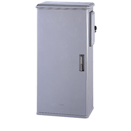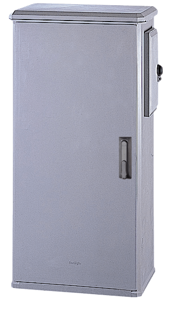 Materiali Stampati in SMC (vetroresina) – Colore grigio RAL 7040. Cerniere interne in lega di alluminio ruotanti su solette antibloccanti in materiale termoplastico. Caratteristiche Porta incernierata completa di chiusura tipo cremonese azionabile con maniglia a scomparsa agibile mediante serratura di sicurezza a cifratura unica (cod.21). Prese d’aria inferiori e sottotetto per ventilazione naturale interna. Parti metalliche esterne in acciaio inox o in acciaio tropicalizzato e verniciato grigio elettricamente isolate con l’interno. Per posa autonoma con telaio in muratura (da ordinare separatamente). Con cassonetto portacontatore incorporato sul fianco destro – accesso indipendente con serratura diversificata (in esecuzione standard triangolare luchettabile). Adatto per il montaggio diretto dei contatori elettronici: - Max n.1 gruppo di misura integrato monofase tipo GMI-GMY. - Max n.1 monofase per potenze fino a 10 Kw tipo GEM-GISM. Fissaggio con n.1 basetta T5 A2 (matricola 280012) - Max n.1 trifase per potenze fino a 16,5 Kw tipo GET2A, fino a 30 Kw tipo GIST. Fissaggio con n.1 basetta T5 A4 (matricola 286142). Grado di protezione IP 44 secondo CEI EN 60529, IK 10 secondo CEI EN 62262.