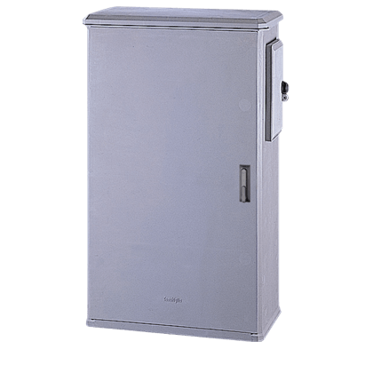 Materiali Stampati in SMC (vetroresina) – Colore grigio RAL 7040. Cerniere interne in resina termoplastica a base poliarillamidica rinforzata con fibra di vetro (IXEF). Parti metalliche esterne in acciaio inox o in acciaio tropicalizzato e verniciato grigio, elettricamente isolate con l’interno. Caratteristiche Porta incernierata completa di chiusura tipo cremonese azionabile con maniglia a scomparsa agibile mediante serratura di sicurezza a cifratura unica (codice 21). Prese d’aria inferiori e sottotetto per ventilazione naturale interna. Per posa autonoma a pavimento con telaio di muratura (da ordinare separatamente). Con cassonetto portacontatore incorporato sul fianco destro – accesso indipendente con serratura diversificata (in esecuzione standard triangolare luchettabile). Adatto per il montaggio diretto dei contatori: - Max n.1 gruppo di misura integrato monofase tipo GMI-GMY. - Max n.1 monofase per potenze fino a 10 Kw tipo GEM-GISM. Fissaggio con n.1 basetta T5 A2 (matricola 286103) - Max n.1 trifase per potenze fino a 16,5 Kw tipo GET2A, fino a 30 Kw tipo GIST. Fissaggio con n.1 basetta T5 A4 (matricola 286142). Grado di protezione IP 44 secondo CEI EN 60529, IK 10 secondo CEI EN 62262.