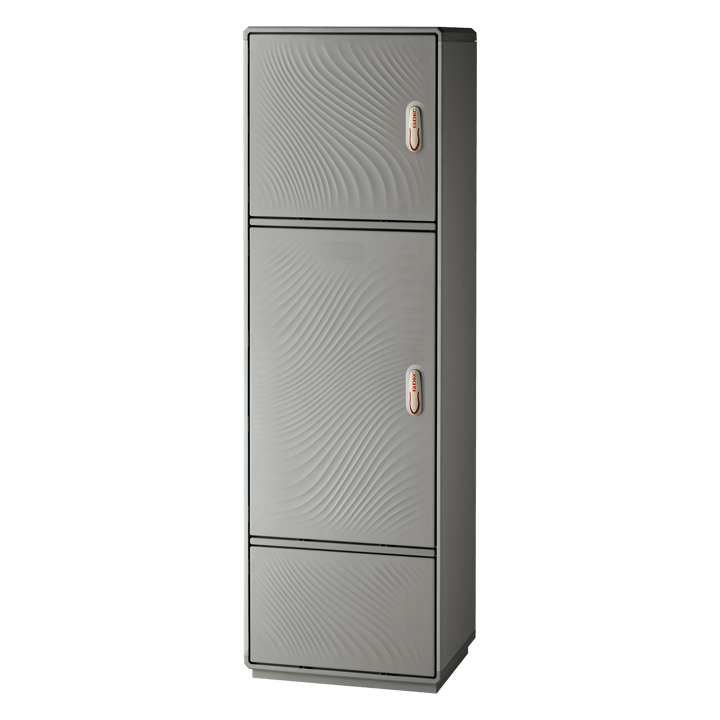 Caratteristiche Realizzati con due vani apparecchiature separati da setto intermedio + zoccolo inferiore integrati in unica struttura di sostegno. Tensione nominale di isolamento Ui 690V. Completi di telaio di ancoraggio per installazione su basamento in calcestruzzo. Porte incernierate complete di chiusura azionabile con maniglia a scomparsa e serratura di sicurezza a cifratura unica Y21 su tutti i vani (cilindro a profilato DIN18252 - a richiesta cifrature differenziate). Lato di apertura ante modificabile in opera, anche su singolo vano (per informazioni dettagliate consultare la sezione Accessori). Disposizione dei vani (superiore/intermedio) modificabile in opera secondo le necessità di installazione apparecchiature e accessori interni (sistema DOTPER®). Equipaggiabili con piastre di fondo e accessori dedicati per realizzazione quadri. Pareti di fondo munite di borchie predisposte per inserimento inserti filettati con prigioniero per fissaggio accessori M6x20. Setto di chiusura inferiore con passacavi conici e guarnizione di tenuta. Materiali Realizzati in vetroresina colore RAL 7035. Maniglia in resina termoplastica. Tenone di manovra in acciaio zincato. Aste e paletti interni in acciaio con trattamento GEOMET 321. Cerniere esterne non accessibili in acciaio inox. Telaio in acciaio zincato e verniciato. Guarnizioni di tenuta realizzate in EPDM espanso. Normative Certificazione IMQ secondo norma CEI EN 62208. Grado di protezione IP55 secondo CEI EN 60529, IK10 secondo CEI EN 62262. Predisposti per esecuzione di apparecchiature in classe II secondo CEI 64-8/4.