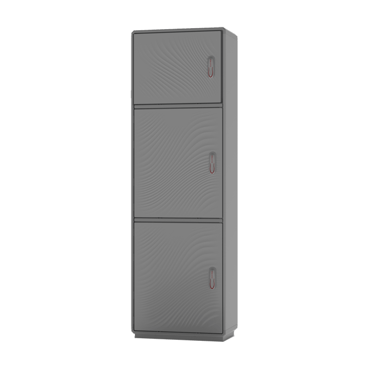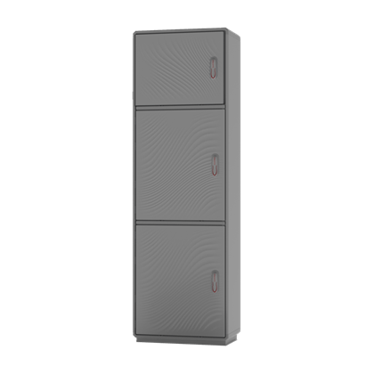 Caratteristiche Realizzati con tre/quattro vani apparecchiature integrati in unica struttura di sostegno separati da setto intermedio. Tensione nominale di isolamento Ui 690V. Completi di telaio di ancoraggio per installazione su basamento in calcestruzzo. Porte incernierate complete di chiusura azionabile con maniglia a scomparsa e serratura di sicurezza a cifratura unica Y21 su tutti i vani (cilindro a profilato DIN18252 - a richiesta cifrature differenziate). Lato di apertura ante modificabile in opera, anche su singolo vano (per informazioni dettagliate consultare la sezione Accessori). Disposizione dei vani (superiore/intermedio/inferiore) modificabile in opera secondo le necessità di installazione apparecchiature e accessori interni (sistema DOTPER®). Equipaggiabili con piastre di fondo e accessori dedicati per realizzazione quadri. Pareti di fondo munite di borchie predisposte per inserimento inserti filettati con prigioniero per fissaggio accessori M6x20. Setto di chiusura inferiore con passacavi conici e guarnizione di tenuta. Materiali Realizzati in vetroresina colore RAL 7035. Maniglia in resina termoplastica. Tenone di manovra in acciaio zincato. Aste e paletti interni in acciaio con trattamento GEOMET 321. Cerniere esterne non accessibili in acciaio inox. Telaio in acciaio zincato e verniciato. Guarnizioni di tenuta realizzate in EPDM espanso. Normative Certificazione IMQ secondo norma CEI EN 62208. Grado di protezione IP55 secondo CEI EN 60529, IK10 secondo CEI EN 62262. Predisposti per esecuzione di apparecchiature in classe II secondo CEI 64-8/4.