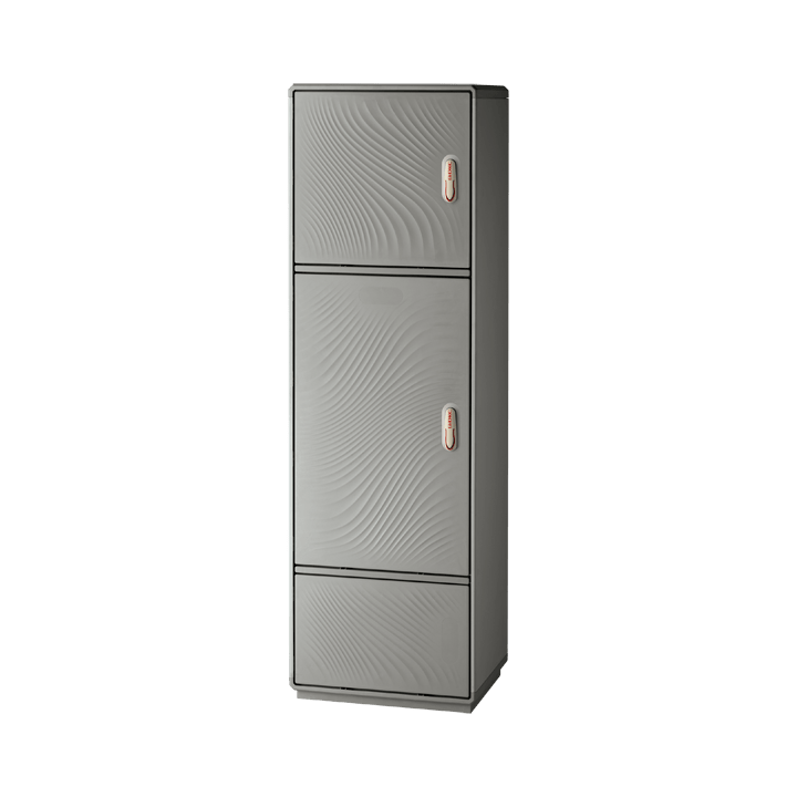 Caratteristiche Realizzati con due vani apparecchiature separati da setto intermedio + zoccolo inferiore integrati in unica struttura di sostegno. Tensione nominale di isolamento Ui 690V. Completi di telaio di ancoraggio per installazione su basamento in calcestruzzo. Porte incernierate complete di chiusura azionabile con maniglia a scomparsa e serratura di sicurezza a cifratura unica Y21 su tutti i vani (cilindro a profilato DIN18252 - a richiesta cifrature differenziate). Lato di apertura ante modificabile in opera, anche su singolo vano (per informazioni dettagliate consultare la sezione Accessori). Disposizione dei vani (superiore/intermedio) modificabile in opera secondo le necessità di installazione apparecchiature e accessori interni (sistema DOTPER®). Equipaggiabili con piastre di fondo e accessori dedicati per realizzazione quadri. Pareti di fondo munite di borchie predisposte per inserimento inserti filettati con prigioniero per fissaggio accessori M6x20. Setto di chiusura inferiore con passacavi conici e guarnizione di tenuta. Materiali Realizzati in vetroresina colore RAL 7035. Maniglia in resina termoplastica. Tenone di manovra in acciaio zincato. Aste e paletti interni in acciaio con trattamento GEOMET 321. Cerniere esterne non accessibili in acciaio inox. Telaio in acciaio zincato e verniciato. Guarnizioni di tenuta realizzate in EPDM espanso. Normative Certificazione IMQ secondo norma CEI EN 62208. Grado di protezione IP55 secondo CEI EN 60529, IK10 secondo CEI EN 62262. Predisposti per esecuzione di apparecchiature in classe II secondo CEI 64-8/4.