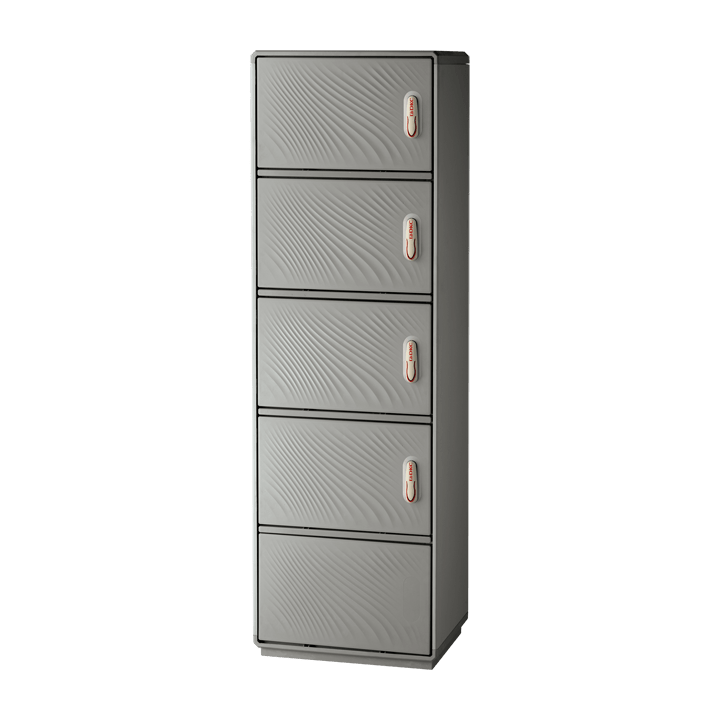 Caratteristiche Realizzati con quattro vani apparecchiature separati da setto intermedio + zoccolo inferiore integrati in unica struttura di sostegno. Disposizione dei vani (superiore/intermedio/inferiore) modificabile in opera secondo le necessità di installazione apparecchiature e accessori interni (sistema DOTPER®). Tensione nominale di isolamento Ui 690V. Completi di telaio di ancoraggio per installazione su basamento in calcestruzzo. Porte incernierate complete di chiusura azionabile con maniglia a scomparsa e serratura di sicurezza a cifratura unica Y21 su tutti i vani (cilindro a profilato DIN18252 - a richiesta cifrature differenziate). Lato di apertura ante modificabile in opera, anche su singolo vano (per informazioni dettagliate consultare la sezione Accessori). Equipaggiabili con piastre di fondo e accessori dedicati per realizzazione quadri. Pareti di fondo munite di borchie predisposte per inserimento inserti filettati con prigioniero per fissaggio accessori M6x20. Setto di chiusura inferiore con passacavi conici e guarnizione di tenuta Materiali Realizzati in vetroresina colore RAL 7035. Maniglia in resina termoplastica. Tenone di manovra in acciaio zincato. Aste e paletti interni in acciaio con trattamento GEOMET 321. Cerniere esterne non accessibili in acciaio inox. Telaio in acciaio zincato e verniciato. Guarnizioni di tenuta realizzate in EPDM espanso. Normative Certificazione IMQ secondo norma CEI EN 62208. Grado di protezione IP55 secondo CEI EN 60529, IK10 secondo CEI EN 62262. Predisposti per esecuzione di apparecchiature in classe II secondo CEI 64-8/4.