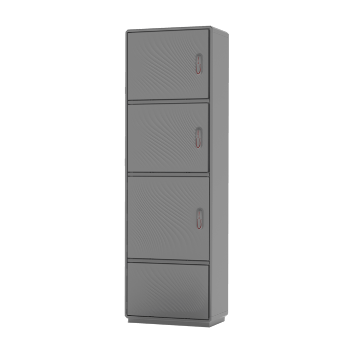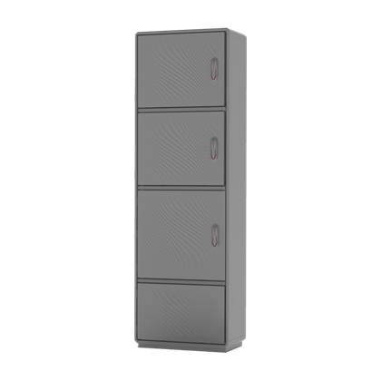 Caratteristiche Realizzati con tre vani apparecchiature separati da setto intermedio + zoccolo inferiore integrati in unica struttura di sostegno. Tensione nominale di isolamento Ui 690V. Completi di telaio di ancoraggio per installazione su basamento in calcestruzzo. Porte incernierate complete di chiusura azionabile con maniglia a scomparsa e serratura di sicurezza a cifratura unica Y21 su tutti i vani (cilindro a profilato DIN18252 - a richiesta cifrature differenziate). Lato di apertura ante modificabile in opera, anche su singolo vano (per informazioni dettagliate consultare la sezione Accessori). Disposizione dei vani (superiore/intermedio/inferiore) modificabile in opera secondo le necessità di installazione apparecchiature e accessori interni (sistema DOTPER®). Equipaggiabili con piastre di fondo e accessori dedicati per realizzazione quadri. Pareti di fondo munite di borchie predisposte per inserimento inserti filettati con prigioniero per fissaggio accessori M6x20. Setto di chiusura inferiore con passacavi conici e guarnizione di tenuta. Materiali Realizzati in vetroresina colore RAL 7035. Maniglia in resina termoplastica. Tenone di manovra in acciaio zincato. Aste e paletti interni in acciaio con trattamento GEOMET 321. Cerniere esterne non accessibili in acciaio inox. Telaio in acciaio zincato e verniciato. Guarnizioni di tenuta realizzate in EPDM espanso. Normative Certificazione IMQ secondo norma CEI EN 62208. Grado di protezione IP55 secondo CEI EN 60529, IK10 secondo CEI EN 62262. Predisposti per esecuzione di apparecchiature in classe II secondo CEI 64-8/4.