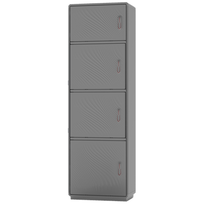 Caratteristiche Realizzato con 4/5 vani apparecchiature integrati in unica struttura di sostegno separati da setto intermedio. Disposizione dei vani (superiore/intermedio/inferiore) modificabile in opera secondo le necessità di installazione apparecchiature e accessori interni (sistema DOTPER®). Tensione nominale di isolamento Ui 690V. Completi di telaio di ancoraggio per installazione su basamento in calcestruzzo. Porte incernierate complete di chiusura azionabile con maniglia a scomparsa e serratura di sicurezza a cifratura unica Y21 su tutti i vani (cilindro a profilato DIN18252 - a richiesta cifrature differenziate). Lato di apertura ante modificabile in opera, anche su singolo vano (per informazioni dettagliate consultare la sezione Accessori). Equipaggiabili con piastre di fondo e accessori dedicati per realizzazione quadri. Pareti di fondo munite di borchie predisposte per inserimento inserti filettati con prigioniero per fissaggio accessori M6x20. Setto di chiusura inferiore con passacavi conici e guarnizione di tenuta. Materiali Realizzati in vetroresina colore RAL 7035. Maniglia in resina termoplastica. Tenone di manovra in acciaio zincato. Aste e paletti interni in acciaio con trattamento GEOMET 321. Cerniere esterne non accessibili in acciaio inox. Telaio in acciaio zincato e verniciato. Guarnizioni di tenuta realizzate in EPDM espanso. Normative Certificazione IMQ secondo norma CEI EN 62208. Grado di protezione IP55 secondo CEI EN 60529, IK10 secondo CEI EN 62262. Predisposti per esecuzione di apparecchiature in classe II secondo CEI 64-8/4.