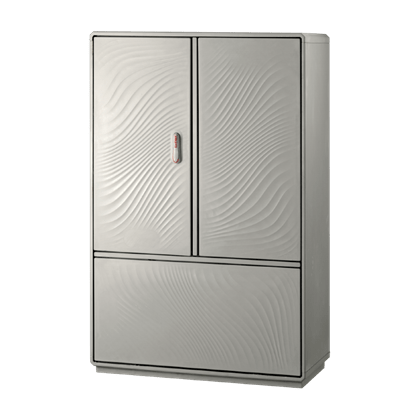 Caratteristiche Realizzati con 1 vano apparecchiature + zoccolo inferiore integrati in unica struttura di sostegno. Tensione nominale di isolamento Ui 690V Completi di telaio di ancoraggio per installazione su basamento in calcestruzzo. Porta incernierata completa di chiusura azionabile con maniglia a scomparsa e serratura di sicurezza a cifratura unica Y21 (cilindro a profilato DIN18252 - a richiesta cifrature personalizzate). Lato di apertura anta modificabile in opera, anche su singolo vano (per informazioni dettagliate consultare la sezione Accessori). Equipaggiabili con piastre di fondo e accessori dedicati per realizzazione quadri. Pareti di fondo munite di borchie predisposte per inserimento di inserti filettati con prigioniero per fissaggio accessori M6x20. Setto di chiusura inferiore con passacavi conici e guarnizione di tenuta. Materiali Realizzati in vetroresina colore RAL 7035. Maniglia in resina termoplastica. Tenone di manovra in acciaio zincato. Aste e paletti interni in acciaio con trattamento GEOMET 321. Cerniere esterne non accessibili in acciaio inox. Telaio in acciaio zincato e verniciato. Guarnizioni di tenuta realizzate in EPDM espanso. Normative Certificazione IMQ secondo norma CEI EN 62208. Grado di protezione IP55 secondo CEI EN 60529, IK10 secondo CEI EN 62262. Predisposti per esecuzione di apparecchiature in classe II secondo CEI 64-8/4.