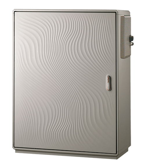 Con cassonetto portacontatore incorporato sul fianco destro - accesso indipendente con serratura diversificata (in esecuzione standard triangolare luchettabile). Adatto per il montaggio diretto dei contatori elettronici: max n°1 gruppo di misura integrato monofase tipo GMI-GMY; max n°1 monofase per potenze fino a 10Kw tipo GEM-GISM, fissaggio con n°1 basetta T5 A2 (matricola 286103); max n° 1 trifase per potenze fino a 16.5Kw tipo GET2A, fino a 30Kw tipo GIST, fissaggio con n°1 basetta T5 A4 (Matricola 286142).