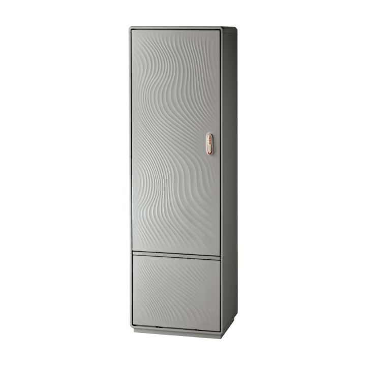 Materiali Stampati in SMC (vetroresina) - Colore grigio RAL 7040. Cerniere interne in resina termoplastica a base poliarillamidica rinforzata con fibra di vetro (IXEF). Parti metalliche esterne in acciaio inox o in acciaio tropicalizzato e verniciato grigio, secondo norme CEI 7-6, elettricamente isolate con l'interno. Caratteristiche Porta a due ante incernierata e completa di serratura tipo cremonese azionabile con maniglia a scomparsa agibile mediante serratura di sicurezza a cifratura unica (codice 21). Prese d'aria inferiori e sottotetto per ventilazione naturale interna. Per posa a pavimento mediante telaio di ancoraggio. Golfari di sollevamento. Grado di protezione IP 44 secondo CEI EN 60529, IK 10 secondo CEI EN 62262. Sui modelli CM.../../A2 non è possibile l'applicazione delle piastre di fondo. Vano interno aperto. Possibilità di accedere alle apparecchiature da entrambi i lati (anteriore e posteriore). Applicazioni: per garantire protezione alle apparecchiature ingombranti mediante incapsulamento.