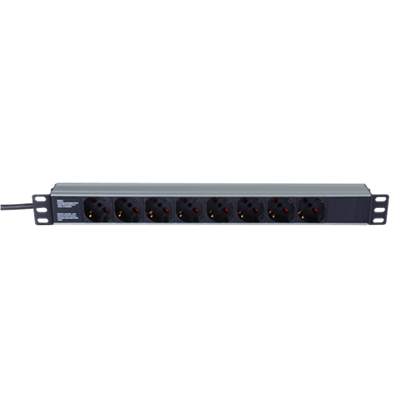 8 prese Germany + Italy 10/16A 250V. Ingombro 1 unità - cavo H05VV-F 3G 1,5 mm2 x 3 m - carico 3,5 KW max. Installazione orizzontale.
