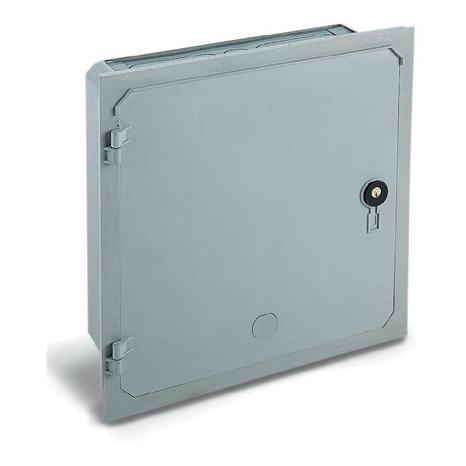 Materiali Stampati in SMC (vetroresina), colore grigio RAL 7040. Caratteristiche Coperchio incernierato ad incastro asportabile in apertura. Zanche a murare in acciaio zincato a caldo. Aerazione interna ricavata sul perimetro del coperchio. Chiusura coperchio: Tipi CPD – CPE: con chiave ad impronta triangolare. Tipi CPF: con serratura di sicurezza agibile con chiave a spillo cfr. 630. Tipi CPEE: con serratura di sicurezza agibile con chiave cfr. Y21 con coperchio incernierato esternamente. Grado di protezione IP 43 secondo CEI EN 60529; IK 10 secondo CEI EN 62262. Esecuzioni/C: con due finestre opposte chiuse con portine in materiale termoplastico a foratura prestabilita per passaggio cavi. Esecuzioni/D-DA: con due finestre opposte di cui la superiore chiusa con portina in materiale termoplastico a frattura prestabilita per passaggio cavi, l’inferiore completa di raccordo a cono a finestra aperta o con raccordo a cono trapezoidale con coperchio apribile e completo di passacavi.