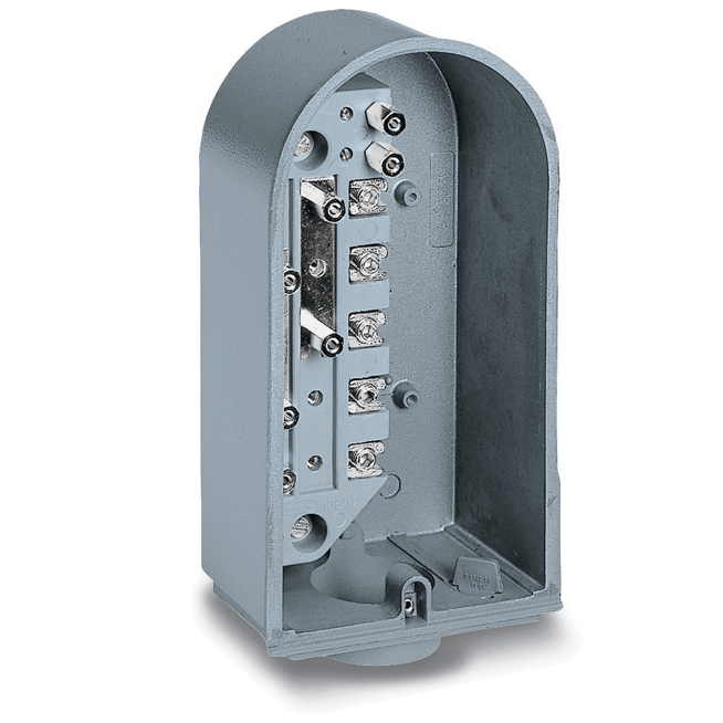 Materiali Base isolante stampata in SMC (vetroresina). Caratteristiche Coperchio innestato a coulisse con chiusura viti a brugola in acciaio inox AISI 304. Esecuzioni:…/F: con imbocco inferiore per montaggio su sostegni tubolari con estremità non filettata. Applicazioni Per esterno, in impianti di protezione catodica, prese di potenziale, punti di misura elettrica su condutture metalliche. Materiali destinati ad impiego esclusivo in impianti con tensione inferiore a 50 Vcc. Grado di protezione IP 44 secondo CEI EN 60529, IK 10 secondo CEI EN 62262.