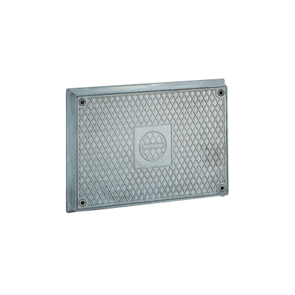 Materiali In lega di alluminio UNI EN 1706 AC – 46100 DF pressocolata. Chiusura coperchio con viti antiperdenti in acciaio inox AISI 304. Guarnizione stampata in cloruro di vinile flessibile antinvecchiante. Caratteristiche Adatte a sopportare anche il transito di veicoli leggeri (portata statica circa 1200 kg). Applicazioni/installazioni Per chiusura di pozzetti in muratura o calcestruzzo in laboratori, magazzini, marciapiedi. Per derivazioni e giunzioni di linee elettriche, messa a terra, telefoniche sotterranee. Grado di protezione IP 55 secondo CEI EN 60529 e IK 10 secondo CEI EN 62262.