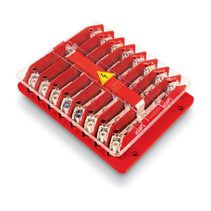 Materiali Base isolante stampata in SMC (vetroresina) antitraccia con separatori in corpo unico – Calotta di protezione in policarbonato. Morsetti, piastrine serraconduttori stampati in ottone UNI EN 12165 e stagnati. Cilindretti di sezionamento in ottone UNI EN 13599, stagnati. Caratteristiche Sezione conduttori fino a 95 mm² per cavi in rame; fino a 150 mm per cavi in alluminio. Serraggio elastico dei conduttori mediante molle in acciaio C70 UNI 3545 agenti sulla piastrina serraconduttori per serraggio diretto anche di conduttori in alluminio. N°2 vie per polo con sezionamento intermedio. Grado di protezione IP 00 secondo CEI EN 60529.