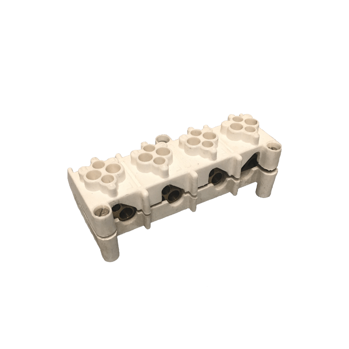 Materiali Base isolante stampata in cloruro di polivinile (PVC) rigido. Caratteristiche Morsetti a più vie indipendenti stampati in ottone UNI EN 12165. Grado di protezione IP 20 secondo CEI EN 60529. Applicazioni/installazioni Per giunzione e derivazione di più conduttori per fase con serraggio indipendente.