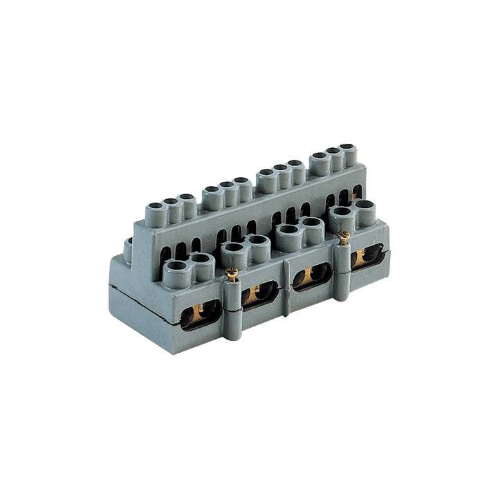 Materiali Base isolante stampata in cloruro di polivinile (PVC) rigido. Caratteristiche Morsetti a più vie indipendenti stampati in ottone UNI EN 12165. Grado di protezione IP 20 secondo CEI EN 60529. Applicazioni/installazioni Per giunzione e derivazione di più conduttori per fase con serraggio indipendente.