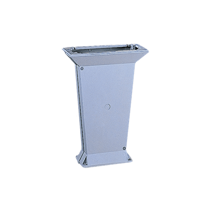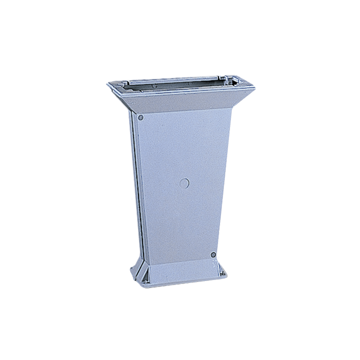 Piedistalli: - Ad elementi in SMC assemblati ad incastro e fissati con viti – colore grigio RAL 7040 - Da fissare su superfici piane mediante tasselli o apposito telaio da murare (da richiedere a parte) Telai: - In profilato di acciaio zincato a caldo a norma CEI 7-6 - Viterie in acciaio inox AISI 304 a garanzia di agibilità nel tempo - Per muratura a pavimento